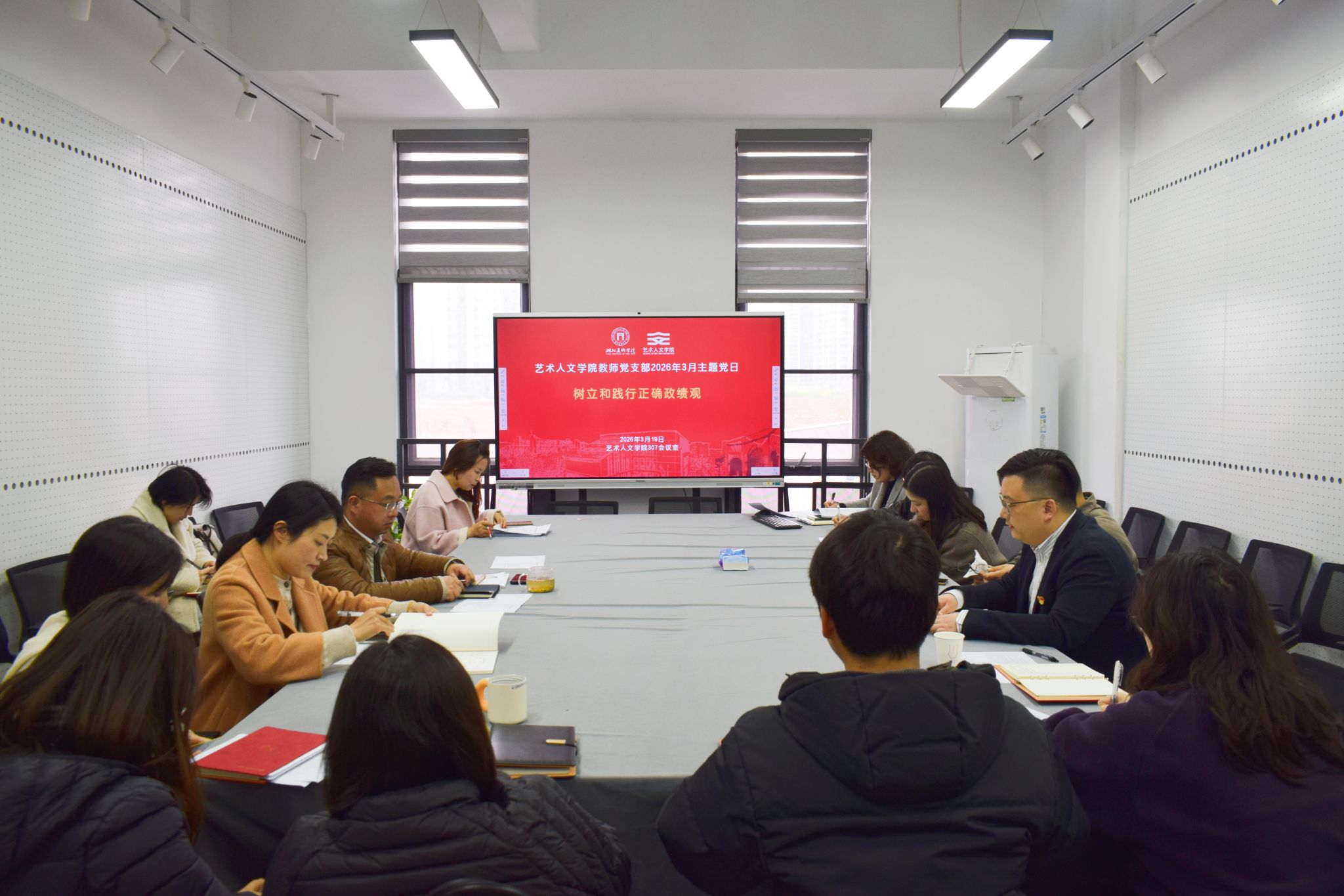 为深入推进党性教育与思想建设,引导党员教师坚定理想信念、强化责任担当,2026年3月19日下午,艺术人文学院教师党支部召开以“树立和践行正确政绩观”为主题的党日集体学习会。会议由教...