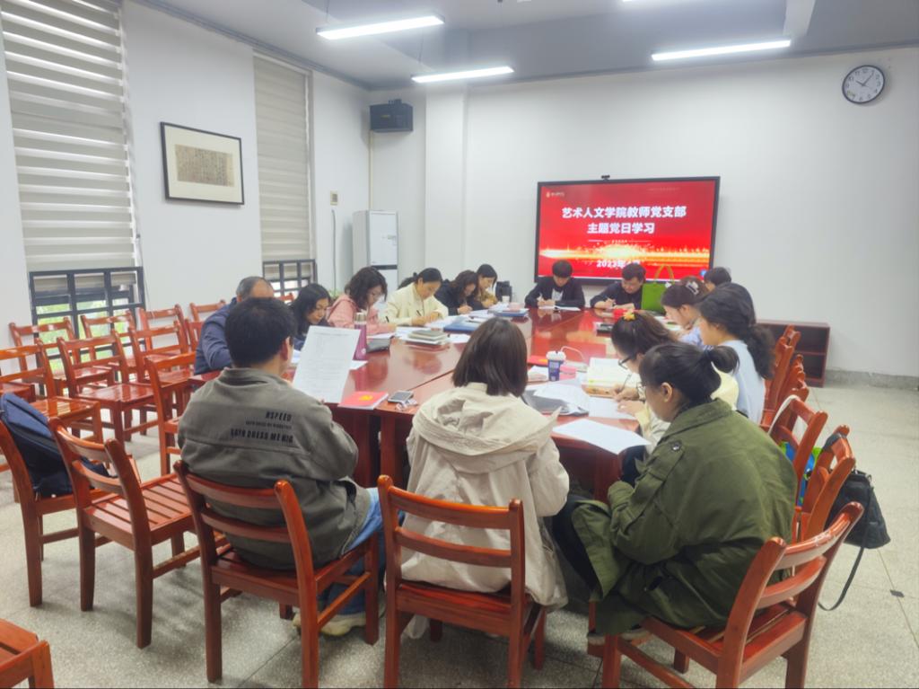 4月28日上午,艺术人文学院在A12-308会议室开展了4月教工党支部主题党日活动。会议由支部书记徐丹丹主持,支部党员参加活动。会上,与会党员集体诵读党章,重温入党誓词,缴纳党费。习近...