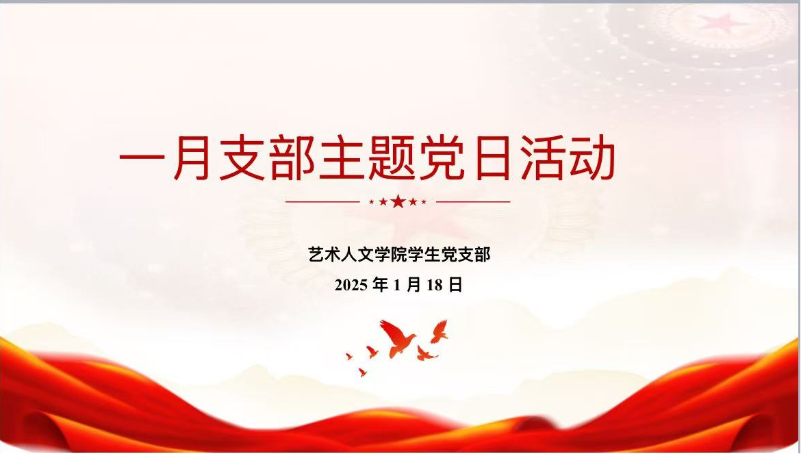 (通讯员:徐丽娜)为提高党员党性修养和理论水平,增强党员身份意识,艺术人文学院学生党支部于2024年1月18日中午12点于线上组织开展1月学生党支部主题党日活动,会议由学生支部书记王...