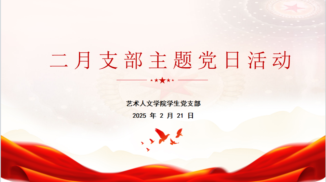 (通讯员:徐丽娜)为提高党员党性修养和理论水平,增强党员身份意识,艺术人文学院学生党支部于2024年2月21日中午12点于线上组织开展2月学生党支部主题党日活动,会议由学生支部书记王...