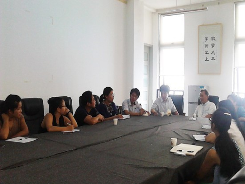 2013年9月3日上午11:30,党委副书记卢斌一行来到美术学系,听取教师对学校领导干部“四风”、学校发展建设方面的意见。