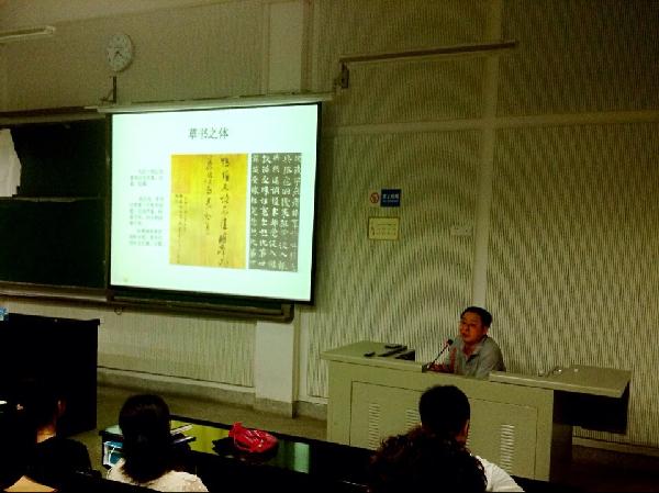 (通讯员:刘诗梦罗晓萱)2015年5月19日,在藏龙岛校区A12 105教室,美术学系副教授许伟东老师给我们带来了一场题为《草书的尺度》的讲座。 在本次讲座中,许老师首先简而言之的说...