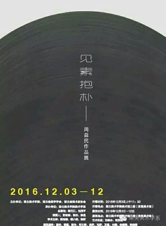 见素抱朴——周益民作品展 展览时间:2016年12月3日-12日 展览地点:湖北美术学院美术馆三楼(武昌区美术馆) 开幕时间:2016年12月3日上午11:30 开幕地点:湖北美术学院美术馆三楼(武...