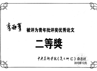 2013 论文《爱欲的肢体言说——DV8肢体剧场研究》获2013青年批评奖二等奖,中央美术学院《美术研究》杂志社。
