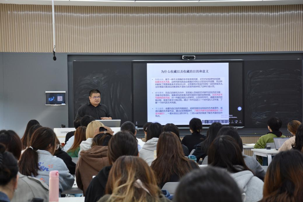张老师最后以陈上岷和褚遂良碑《房玄龄碑》的故事结尾,分享其首次见到陈上岷先生“挽联”时的心境,深刻地指出:“收藏其实是收藏书画家的生命和时间。”张老师寄希望于艺管、文管专业同学,激励大家从自身专业出发,多多关注社会现场,从更加宽泛的视野参与和推动艺术生态的多元发展,成为时代性的批评家、收藏家。