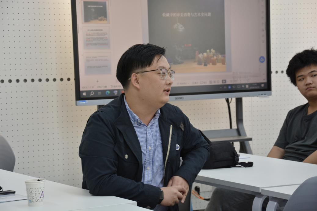 2024年10月31日10点,湖北美术学院艺术人文学院艺管小沙龙第九期在A11-304教室顺利举办。本次沙龙主题为“收藏中的审美消费与艺术史问题”,沙龙特邀武汉美术馆展览部主任、策展人张文博老师担任主讲嘉宾。艺术人文学院副院长李珊担任主持人并开场致词,辛宇老师担任沙龙与谈人,我院何慧斌副教授、程国栋副教授参与对谈。