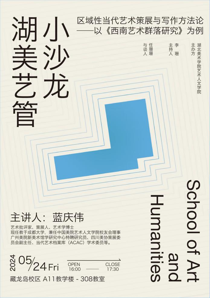 (通讯员:李登杰)5月23日下午,艺术人文学院艺管小沙龙第七期在藏龙岛校区A11-308室如期举行。资深艺术批评家、策展人、艺术学博士蓝庆伟作《区域性当代艺术策展与写作方法论——以西南艺术群落研究为例》的主题分享。艺术人文学院副院长李珊出席并主持沙龙活动,艺术管理系主任任珊珊作为与谈人,与学校相关专业师生共同参与了本次沙龙活动。