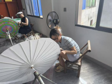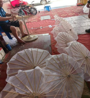 其次是湖南省浏阳市张坊镇的强鸿工艺伞厂,整体的产业由老厂长管理,核心技术由两位主要传承人掌握:陈富贵专注于成品伞制作,其女儿负责合作销售;陈富强则专注伞架的制作,由其子陈祥红经营,儿媳负责外部销售。两家人分工明确、自成体系,从收购竹材到伞骨制作,再到成品伞的完成,形成了完整的产业链。目前,在浏阳市内设有专卖店,其产品还被杭州亚运会采购,生意遍布全国,展示出浏阳油纸企产业在当代的独特活力和传承形态。