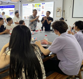 之后同样也会见了来自湖南工商大学工业设计专业的师生团队,在这次交流活动中,围绕伞具的创新设计与文化表达展开多方面的深入交流。首先是设计理念与流程碰撞,探讨了产品设计中如何侧重产品功能、结构、材料工艺、用户体验及市场化,分享了伞具的实用设计、人机工程优化、新材料应用及生产可行性分析。其次也从侧重造型、美学、文化内涵与艺术表现等方面,探讨伞面的图案设计、色彩趋势、文化符号如传统工艺、地域元素的艺术转化及视觉冲击力。双方对比工业设计的系统性与美学的表现力。(图3-2)
