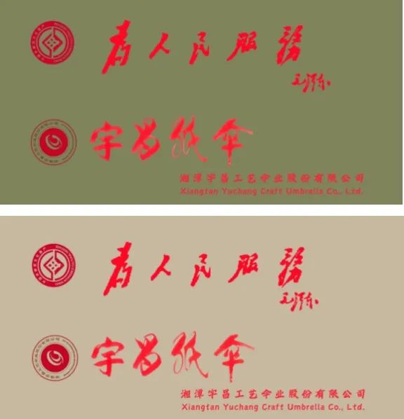 在深入石鼓镇考察学习期间,团队成员沈思应国家级非遗传承人周汉宇先生之邀,为宇昌伞业量身打造了专用于韶山主题展览的油纸伞系列包装(图8-1)。沈思的设计灵感源于上世纪七十年代风靡的“为人民服务”主题帆布挎包,这一具有强烈时代印记和革命象征意义的元素被巧妙转化。设计团队深挖韶山作为伟人故里所承载的独特红色历史文脉,最终凝练出两款主色调包装方案:生机盎然的绿色象征传承不息的生命力与希望,明亮温暖的黄色则寓意着光辉的革命传统与丰收的喜悦。此设计不仅显著提升了油纸伞作为文化产品的视觉美感和品牌辨识度,更通过红色元素的有机融入,赋予传统工艺以鲜明的时代主题和深沉的精神内涵,使其成为传播红色文化的有力载体。