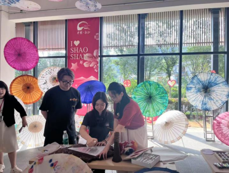 在课程实践与实地考察之余,与我们相同的高校学子同样会前往宇昌伞业有限公司进行考察与采访,因为湘潭县石鼓镇的非遗油纸伞产业已经成为石鼓镇的一个显赫标签,其油纸伞文化在整个湖南省打响了名号,让各高校的有关设计学方面、市场营销方面等专业的学生可以前往学习交流,同时在非遗的传承、保护与创新方面也值得各大院校的探讨与研学。