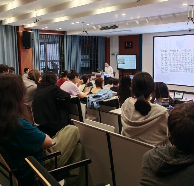 5月6日,艺术人文学院“艺口文彩”学风建设活动暨研究素养提升计划∣艺闻志专家讲坛第13期在A12栋教学楼105学术报告厅举行。故宫博物院器物部副研究馆员、中国艺术研究院梁勇博士应邀作《古代皇家的书画鉴藏》专题讲座。讲座由艺术人文学院文物学科带头人、耿纪朋教授主持,学院党委副书记张乐、副院长李珊,副教授左奇志、何慧斌、程国栋以及青年教师辛宇、许金凌、陈越等,与各专业年级本硕生共同到场聆听了讲座。