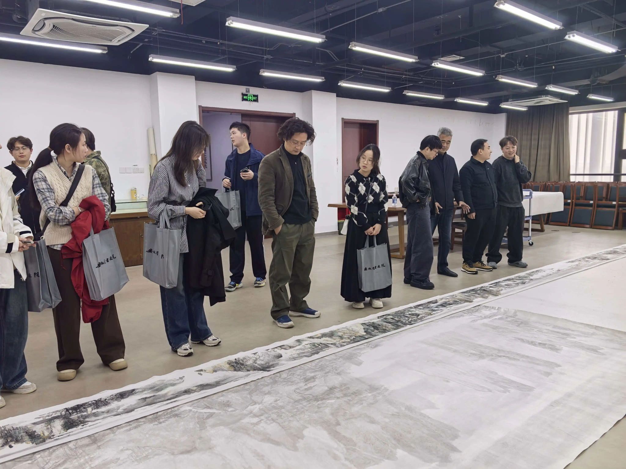 活动期间,安徽省书画院相关负责人对我院师生的到访表示热烈欢迎,并详细介绍了书画院在主题性美术创作推进、重大艺术展览策划以及地方美术史整理研究等领域的丰硕成果与宝贵实践经验。我院师生实地参观了书画院创作室、展厅及学术文献室,近距离观摩院内艺术家经典代表作品与原创创作手稿,结合自身专业理论研究方向,与书画院艺术家就作品历史语境解读、艺术风格演变脉络、作品当代价值挖掘等核心问题展开现场交流探讨。
