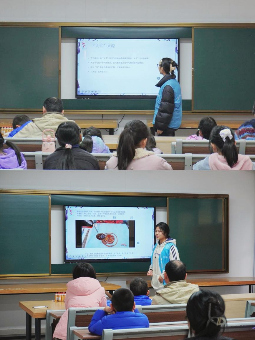 课堂教学围绕大雪节气习俗与非遗糖画艺术展开。志愿者通过图文并茂的方式,系统介绍了大雪节气的物候特征、传统习俗及其蕴含的文化精神,并讲解了糖画这一传统民间艺术的历史沿革与艺术特色。为提升体验效果并确保安全,活动创新性地采用金线膏与透明画布替代传统糖料,使孩子们在清洁、安全的环境中尽享糖画创作的乐趣。