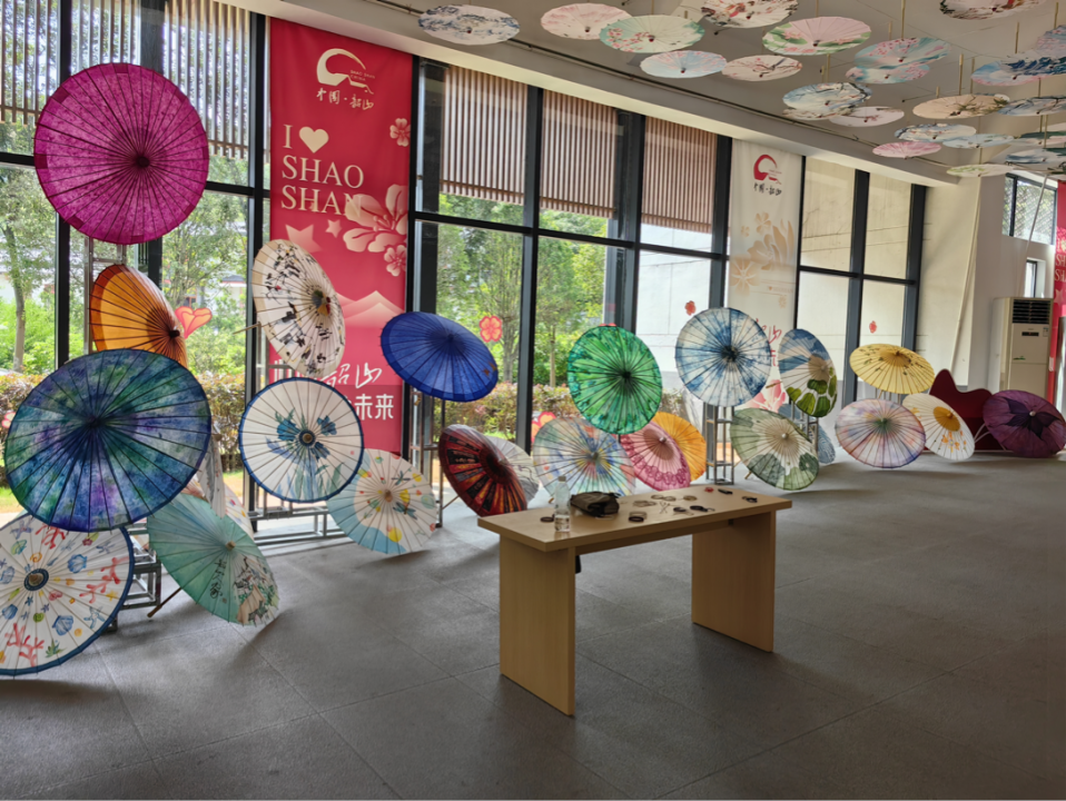 此次受邀在湖南韶山举办的“”红心向党,伞耀湘潭 ——油纸伞文化传承与艺术创新展”以一场跨越千年的非遗对话,生动诠释了"让收藏在博物馆里的文物、陈列在广阔大地上的遗产、书写在古籍里的文字都活起来"的深刻内涵。这场融合技艺传承、学术研究、创新设计的三下乡实践,不仅成为省级"红星向党·伞耀韶山"展览的亮点,更探索出一条"非遗活化+红色文旅"的乡村振兴新路径。