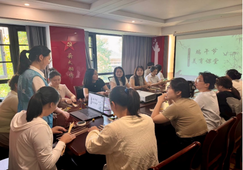 2025年5月27日上午,艺术人文学院“艺文先锋”志愿服务队携手丁家山社区,在丁家山社区党员群众服务中心开展“端午竹艺·艾香情浓”美育课堂活动。