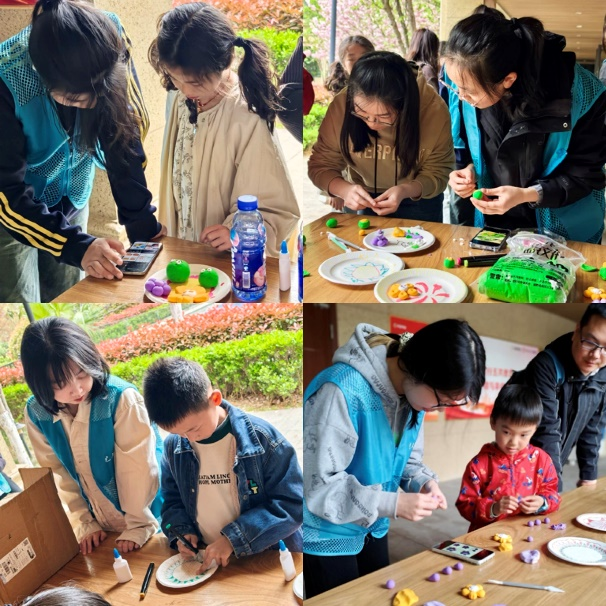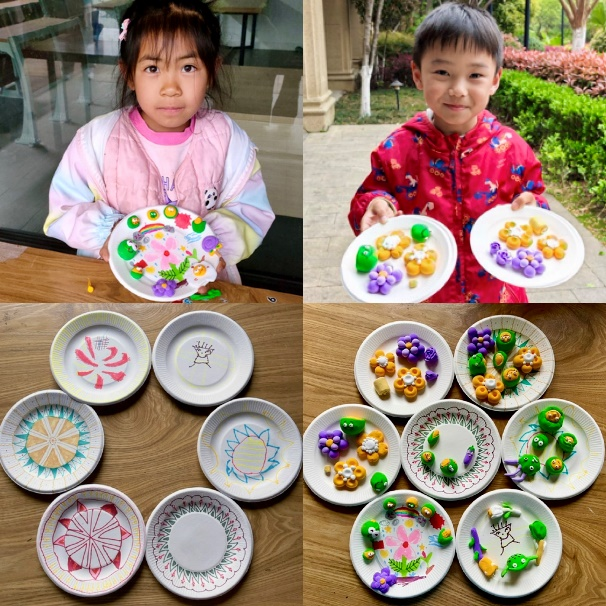 活动现场,志愿者们首先详细讲解了清明节的由来与习俗。手工制作环节,在志愿者们的指导与协助下,孩子们充分发挥创意,于纸盘上描绘春日图景,再用超轻粘土制作出花朵、青团等节令元素,组合粘贴于盘上,创作出丰富生动、富有童趣的清明主题手工作品。