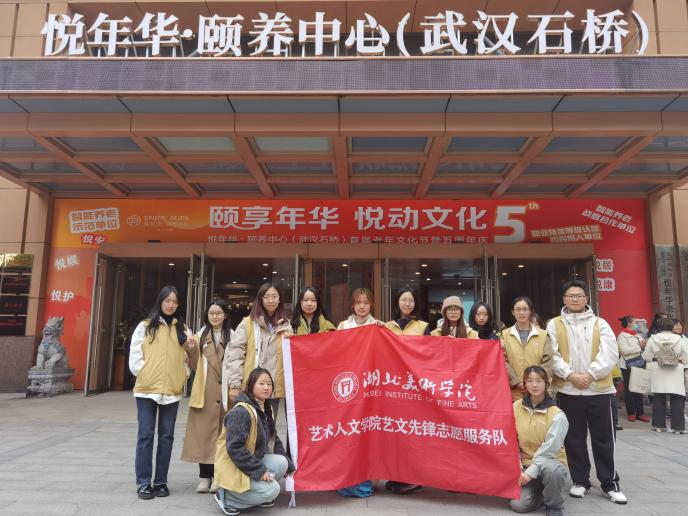 为大力弘扬中华民族孝亲敬老的传统美德,增强我院青年志愿者的社会责任感,让艺术怡情与医疗康养同频共振。近日,艺术人文学院“艺文先锋”志愿服务队13名志愿者参加“悦年华·颐养中心老年文化节”志愿活动。