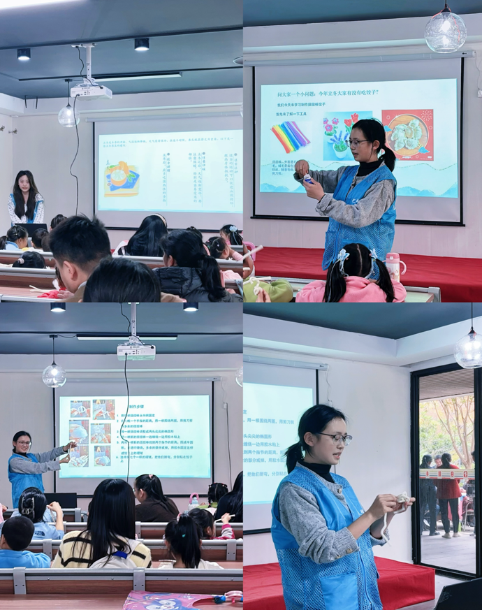 11月9日下午,艺术人文学院“艺文先锋”志愿服务队联合丁家山社区组织开展“饺香艺浓暖立冬”美育志愿课堂活动。本次活动旨在宣扬中华传统文化,提高中华传统文化自信。