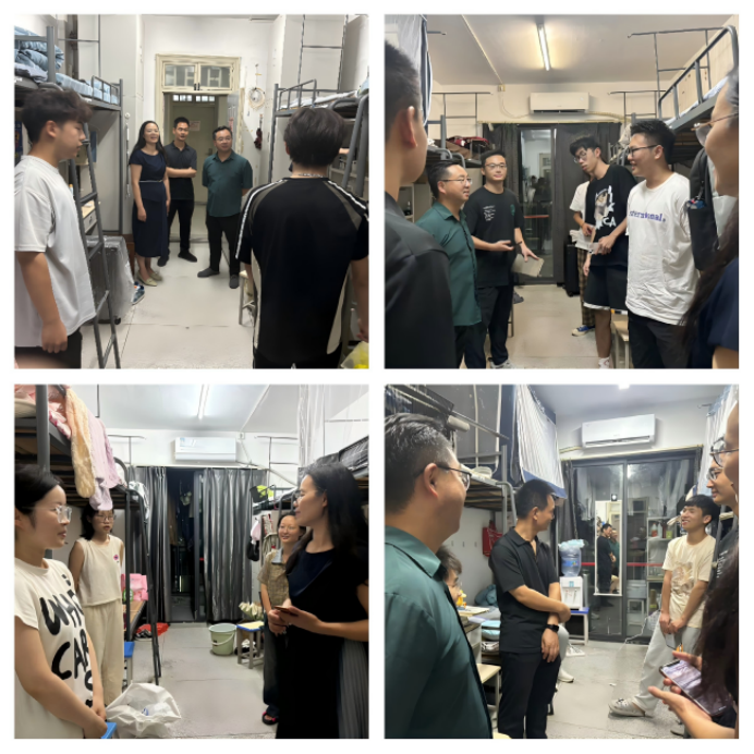 迎新结束当晚,学院领导班子成员、辅导员走进新生宿舍亲切看望了解新生,关心他们入校吃住、坚持安全用水用电、文明卫生情况,并勉励同学们笃定学业发展目标,健康快乐成长。