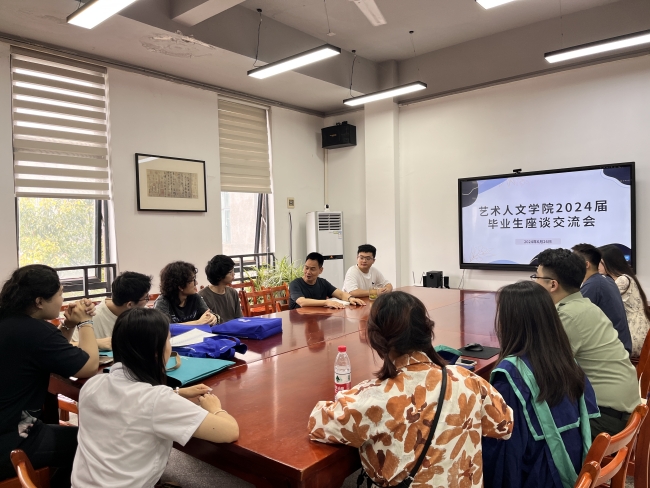 6月26日,艺术人文学院于A11-308会议室召开2024届毕业生代表交流座谈会。艺术人文学院党委副书记张乐、辅导员王鹤聪和2024届毕业年级学生代表共话未来蓝图。