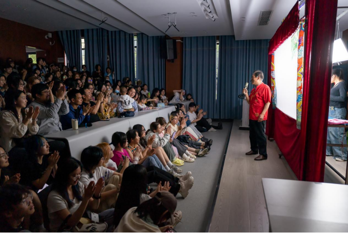演出开始前,耿纪朋教授向到场师生隆重介绍云梦皮影戏国家级非遗传承人秦礼刚老先生,并指出,璀璨的非遗文化是文化自信的源泉,不仅为我们提供着精神滋养,也丰富和塑造着我的审美品味。
