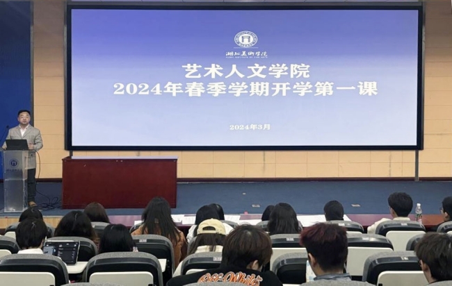 春风来信,“收心”启航。根据《中共湖北美术学院委员会关于开展2024年春季学期系列教育引导活动的通知》要求,为有针对性地开展思想政治引领、安全宣传教育等系列教育活动,近日,艺术人文学院在A12-115举办2024年春季“开学第一课”。艺术人文学院党委书记高伟为同学们授课,学院100余名师生代表到场聆听。