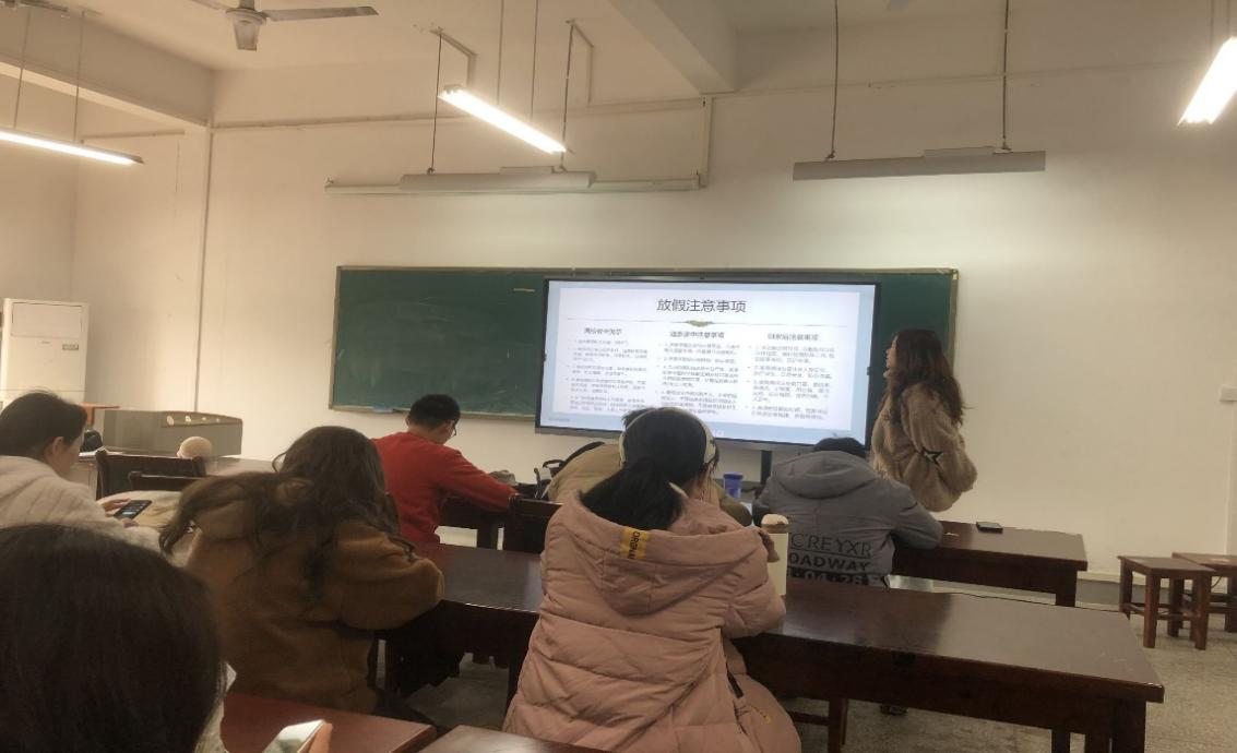 辅导员和各班班长会上详细讲解了离校手续、离校前事务办理等具体安排。从宿舍安全、交通安全、财物安全、人身安全等多方面强调假期存在的安全隐患和注意事项,呼吁全体同学要时刻牢记安全第一的原则,警惕网络诈骗,合理安排假期时间,做好学习规划,保持积极健康的良好心态。