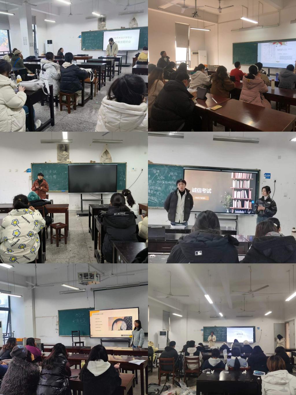 (通讯员:任雨希 李东南)为培养同学们的诚信意识,加强考风考纪建设工作,加深同学们的安全防范意识,艺术人文学院于12月底以班级为单位开展“诚信考试”暨“元旦寒假安全”教育主题班会,各班班主任、辅导员以及全体学生参加。