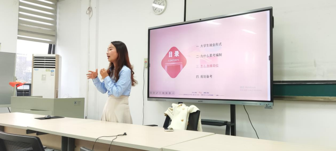为服务学生高质量就业,助力备战公考,帮助毕业生综合分析自身优势和能力,明确未来发展目标和方向,进一步提高自我认知和职业探索能力,12月11日上午10:30,艺术人文学院于A11-304举办考公、事业编与就业发展指导规划讲座,本次讲座邀请几何教育教研负责人何彩蝶担任主讲。