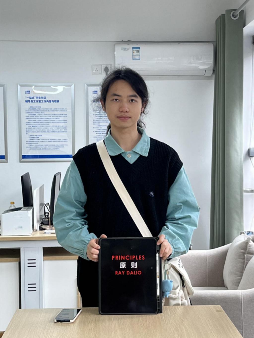 接下来,本科生国家奖学金获得者石堰分享了关于书籍《原则》,就本书的深入解读和个人的成长进行分享,表示通过阅读这本书,重新审视了自己的生活原则和价值观,开始反思自己的行为是否符合自己的原则,并开始重新制定自己的人生目标。这不仅提供了专业的视角和丰富的知识点以其独特的理解分享了《原则》的读后感,还展示了年轻一代的思考方式。