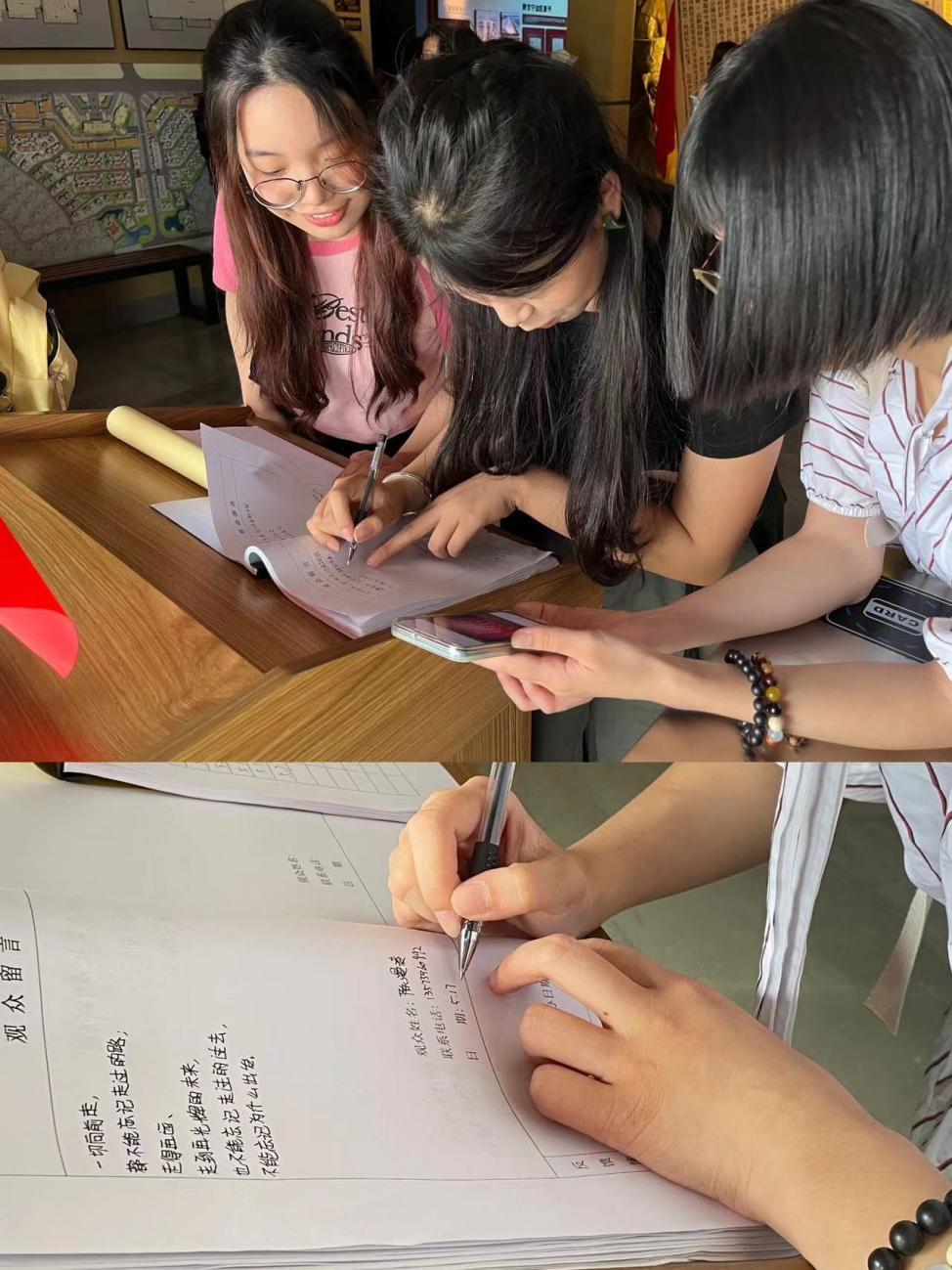 在百年报刊馆,师生们重温入党誓词,每到一处都会驻足凝视,认真观看,一张张珍贵的照片、报刊文献,生动形象地展现了党的百年奋斗历程。在讲解员的生动叙述之中,在声光电、情景模拟、体验互动等现代科技手段的丰富互动下,师生们追寻先辈们的奋斗足迹。参观完后,在观众留言本上,大家纷纷执笔留下感悟。