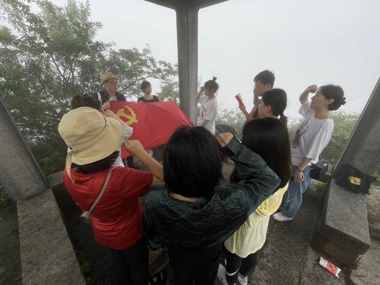 活动第二天,师生们前往红安天台山和七里坪镇常胜街,在天台顶峰,师生们举行了重温入党誓词活动,师生党员面对对鲜红的党旗,右手握拳,庄严宣誓。表达了对革命先烈的缅怀和敬意。