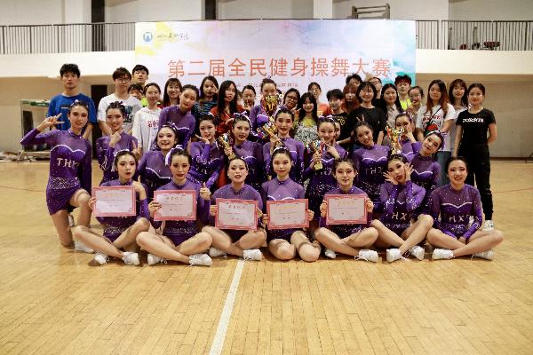 全校十二个系,十二支队伍共聚一堂。我系参赛队员四次出赛,选手们在精心挑选的音乐下,用健美操的力度美和探戈的艺术美给观众以视觉上的冲击。整套两分钟的动作,特别是高难度的托举和劈叉动作,引燃全场。经过评委公平、公开、公正的评选,最后我系不负众望,团体总分遥遥领先,斩获大满贯,获得了自编爵士街舞、二级徒手、校园啦啦、自编啦啦的第一名。