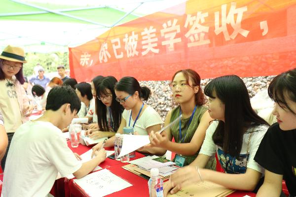 6号上午,美术学系辅导员老师与学生会成员一起迎接新生并开展相关工作。在两位老师的带领下各级学生会成员积极投入到迎新工作中,他们有的在门口辛苦地接应新生,有的在接待处耐心地接受家长和新同学的咨询,也有的积极引导新生与家长前往宿舍,有的忙碌于收取新生档案袋。参与工作的同学各司其职,各尽其力,积极为迎新工作的顺利开展贡献自己的力量。此次迎新,美术学系学生会采取了一站式服务,让工作显得紧凑有序,让新生感受到我们的热情,使新生更容易的融入我们美术学系的大集体。