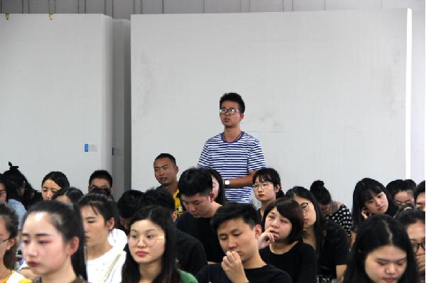 首先老师们对2017级硕士研究生的加入表示热烈欢迎,并简要介绍了美术学系到场的研究生导师。紧接着系副主任沈伟老师致辞,对研一新生提出了期望与祝福,系副主任陈晶老师向新生介绍了美术学系的基本情况,并希望大家在美术学系学习生活愉快。美术史论方向的刘露萌同学代表17级研究生做新生发言,她希望新的开始,能脚踏实地,和大家一起努力进取,共同进步。导师代表张昕老师更为在坐同学带来了学校有关图书馆的相关信息和计划,帮助同学们更好地利用学校的资源。随后导师们听取了同学们在学习上的一些困惑,并就这些问题一一给予了解答,表示针对同学们提出的建设性意见将在今后不断改进。最后系副主任沈伟表示,大学学习以自学为主,希望在座同学在这有限的三年里沉下心来,明确自己的方向,养成主动学习的习惯,珍惜在大学的时光,才能有更远大的未来。