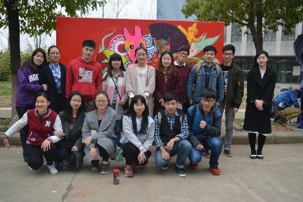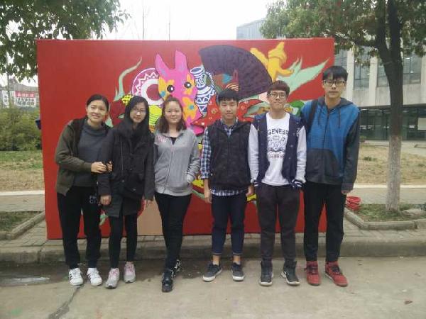 创作过程中,美术学系的同学们认真努力,团结协作,充满热情,工作间更是结下了深厚的友谊。在浓郁的感情氛围下,用独特的创意,别具一格的构思,让缤纷的色彩在画布上飞扬开来。