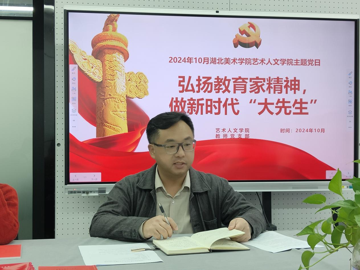 10月29日下午14点,艺术人文学院教师党支部开展十月份主题党日集体学习。本次主题党日活动以“弘扬教育家精神,做新时代‘大先生’”为主题。