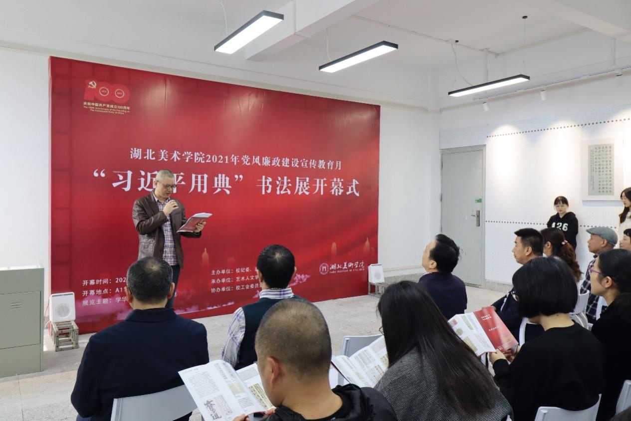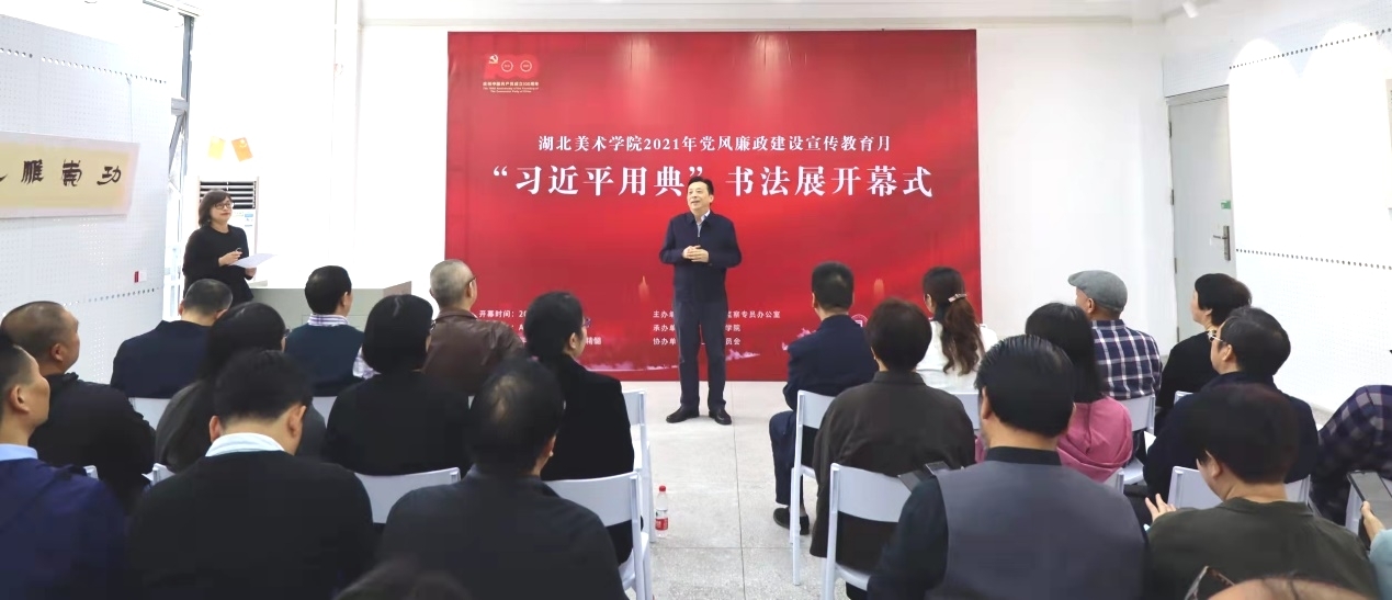 为进一步推进清廉湖美建设,积极打造清廉文化活动精品,提高党风廉政宣传教育的覆盖面和影响力,10月12日,我校2021年党风廉政建设宣传教育月主题活动“习近平用典”书法展在艺术人文学院开幕。校党委副书记卢斌,校纪委书记、监察专员张以林,各院系党政负责人、职能部门负责人,各院系师生代表参加开幕式。开幕式由校纪委副书记李慧主持。
