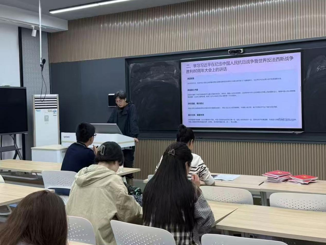 会议最后,党支部书记尹洪鑫对本次支部主题党日活动进行了总结:站在强国建设、民族复兴的新征程上,抗战精神依然具有重要的现实指导意义。这种精神提醒我们,无论面对多大的困难,只要团结一心、坚定信念,就没有克服不了的难关。正如总书记所说:“历史承载过去,也启迪未来。”学生党员同志们要传承和弘扬这种精神,在面对学习和生活中的困难时,要有不畏强暴、血战到底的英雄气概,百折不挠、坚忍不拔的必胜信念,遇到难题不轻易放弃,勇于挑战自我,不断探索创新,以实际行动践行抗战精神。