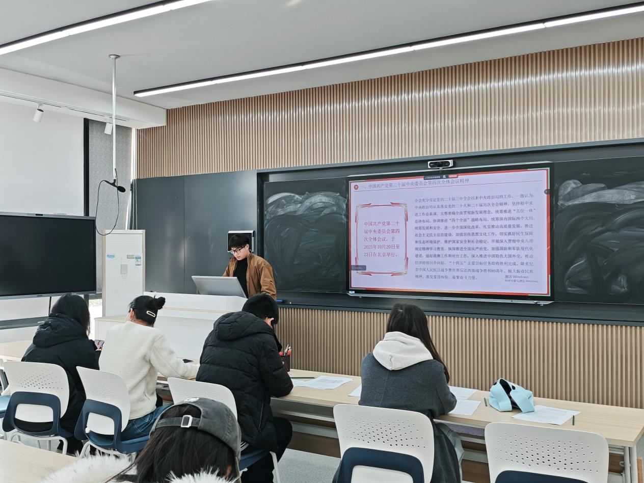 研讨交流环节,党员们展开热烈讨论,发表自己的学习感悟。林卡希同志谈到,党的二十届四中全会全面总结“十四五”时期取得的重大成就,并为“十五五”时期国家发展擘画了清晰蓝图。全会提出要显著提升社会文明程度,这与艺术类专业发展密切相关。作为学生党员,应不断提升专业素养,从实践沃土中凝练创作灵感,自觉承担文化传播的使命责任。王晴晴同志表示,通过学习《教育部等六部门关于加强新时代高校青年教师队伍建设的指导意见》,进一步理解了新时代高校教师队伍建设的目标方向,也对“教学相长”的价值意蕴有了更深认识。作为学生党员,将以实际行动弘扬尊师重教之风,促进良好学风、师风在校园持续涵育。
