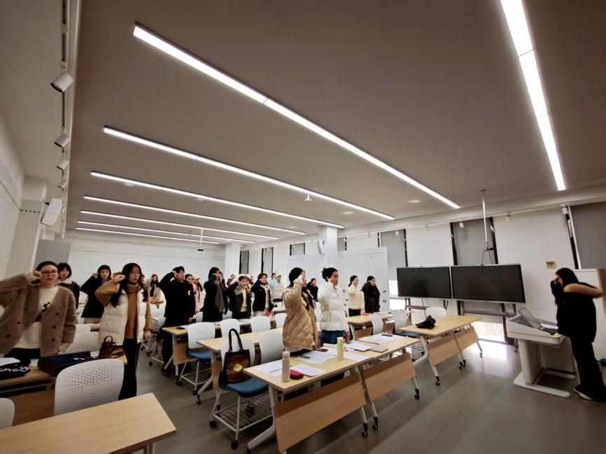 随后,辅导员许老师为全体党员讲授学习贯彻党的二十届四中全会精神专题党课。许老师紧扣全会核心要义与重大部署,围绕全会召开的时代背景、重大意义、主要成果以及 “十五五” 时期经济社会发展目标任务等内容进行系统阐释,引导全体党员深刻领会精神实质、准确把握实践要求,切实把思想和行动统一到党中央决策部署上来。