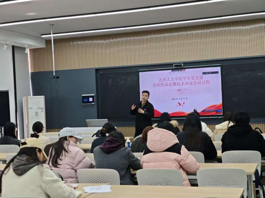 为深入贯彻落实党的二十大精神,进一步锤炼党员党性修养,强化党员身份意识与责任担当,艺术人文学院学生党支部于2026年3月19日中午12点于A11-304组织开展三月支部主题党日活动暨组织生活会。辅导员许捷欣、全体党员和预备党员参加了此次会议,会议由学生党支部副书记王一喆主持。