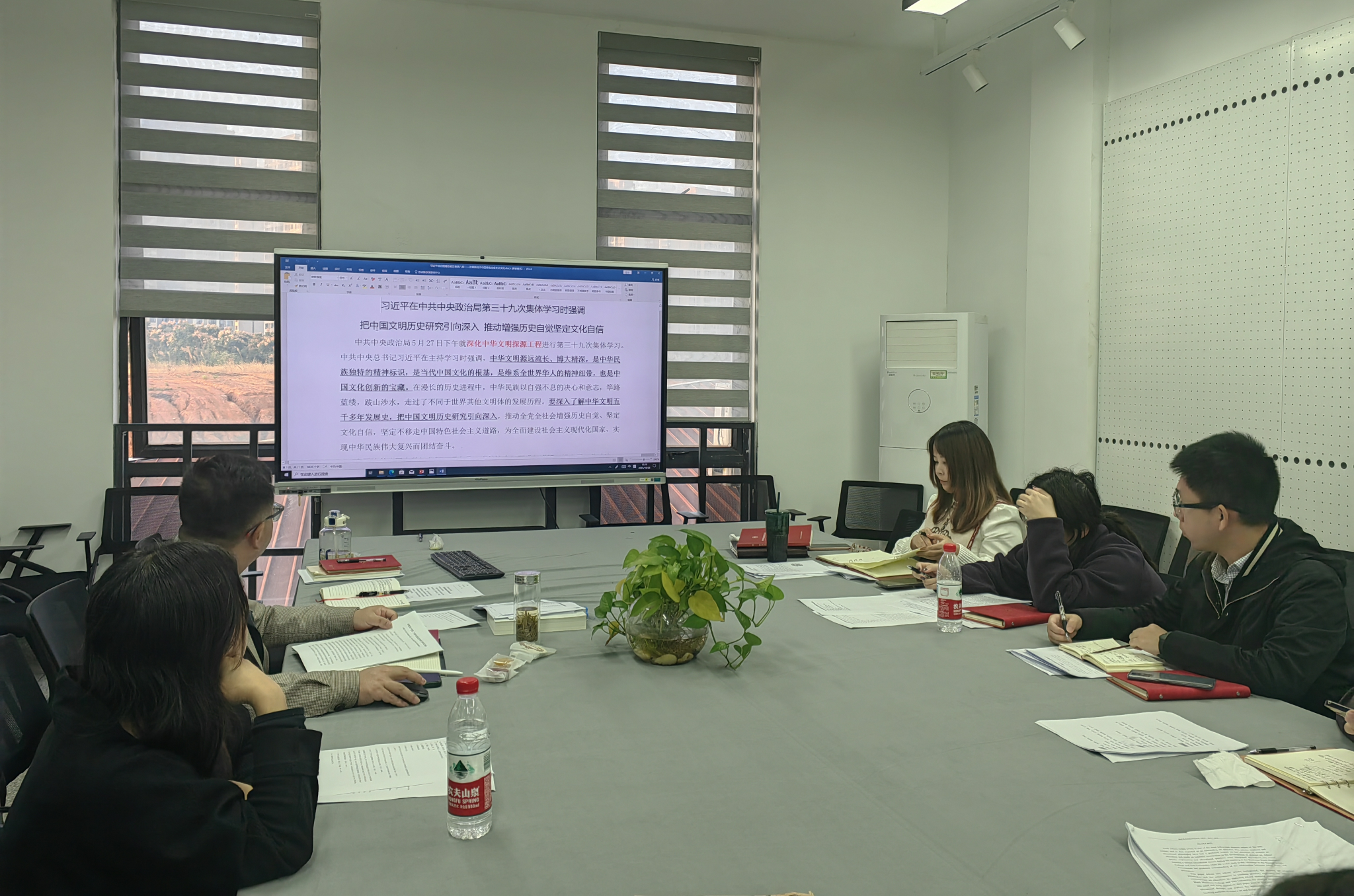会议集中研学了《习近平谈治国理政》第五卷第八章“发展新时代中国特色社会主义文化”。党的十八大以来,党中央坚持把文化建设摆在治国理政突出位置,作出一系列重大部署,形成新时代中国特色社会主义文化思想,推动文化建设在正本清源、守正创新中取得历史性成就,社会主义文化强国建设迈出坚实步伐。建设文化强国是全党全社会的共同任务,我们要锚定2035年建成文化强国的战略目标,坚持马克思主义这一根本指导思想,植根博大精深的中华文明,顺应信息技术发展潮流,不断发展具有强大思想引领力、精神凝聚力、价值感召力、国际影响力的新时代中国特色社会主义文化,不断增强人民精神力量,筑牢强国建设、民族复兴的文化根基。