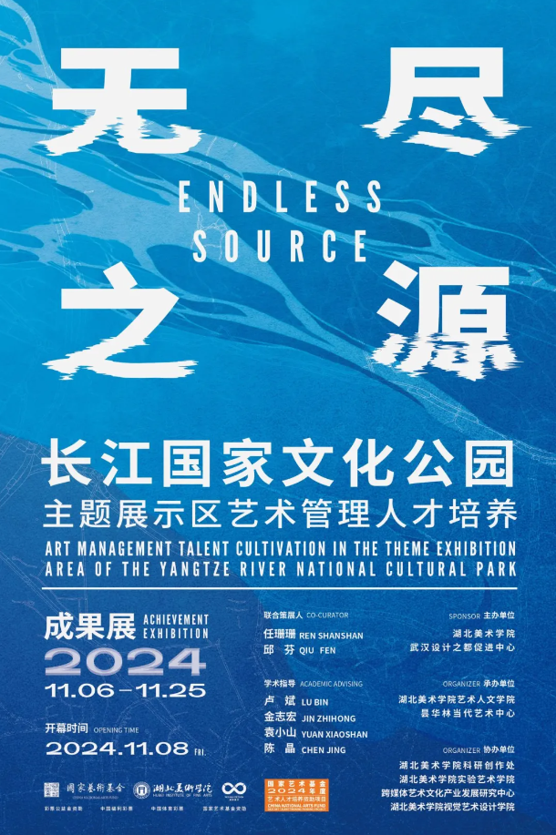 11月8日下午,国家艺术基金2024年度资助项目“长江国家文化公园主题展示区艺术管理人才培养”成果展“无尽之源”在湖北武汉昙华林当代艺术中心盛大开幕。湖北省文化和旅游厅二级巡视员管成文、湖北美术学院党委书记鲍清芬、武汉设计之都促进中心执行理事长杨剑华、湖北省文化和旅游厅二级调研员彭蓉、武汉合美术馆执行馆长鲁虹、项目负责人卢斌等出席开幕式,湖北美术学院艺术人文学院院长陈晶主持开幕式。