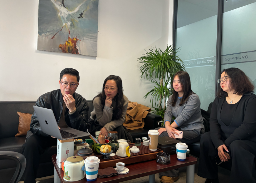 调研过程中艺术人文学院与用人单位围绕校企合作新模式、人才培养新路径等交换意见。我院艺术史论专业校友仇海波,现任职于中电光谷宣传部部长、OVA文创研究所所长、合美术馆副馆长、武汉文化产业创意产业协会秘书长,他详细介绍中电光谷的艺术相关业务版块和公司艺术类相关岗位设置,并就深化校企合作、优化人才培养方案等方面提出建议。陈晶院长介绍了艺术人文学院在人才培养、学科建设、科研创新等方面的优势与特色。她指出,学院愿与用人单位共同聚焦协同育人、实习实训、科研合作等关键环节,持续深化校企合作,助力地方经济与文化高质量发展。任珊珊主任表示,学院坚持以学生为中心,就业为导向,通过强化理论与实践结合,动态优化课程设置,确保人才培养与市场需求精准对接。