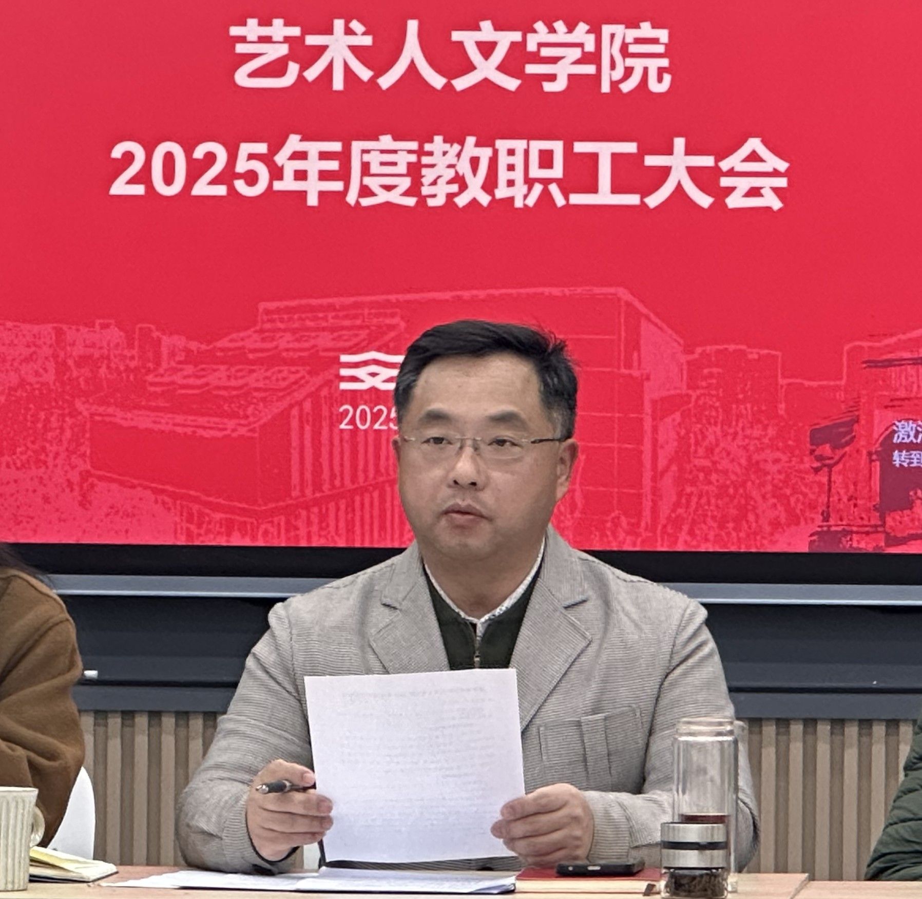 为全面总结2025年度工作成效,凝聚发展共识,部署下一阶段重点任务,12月22日下午,艺术人文学院在A11-304报告厅召开2025年度教职工大会。学院全体教职工参加会议。会议由学院党委书记高伟主持。