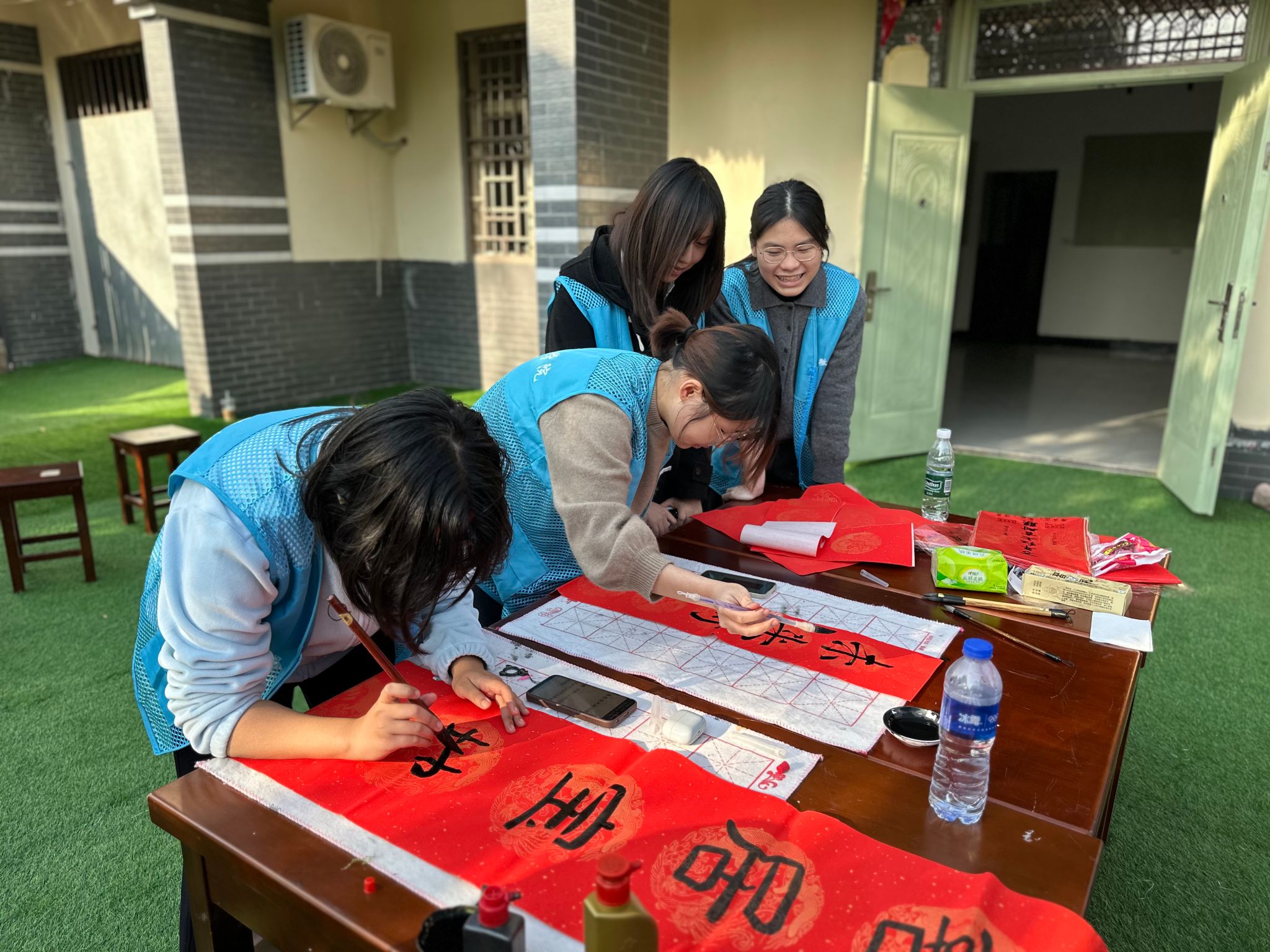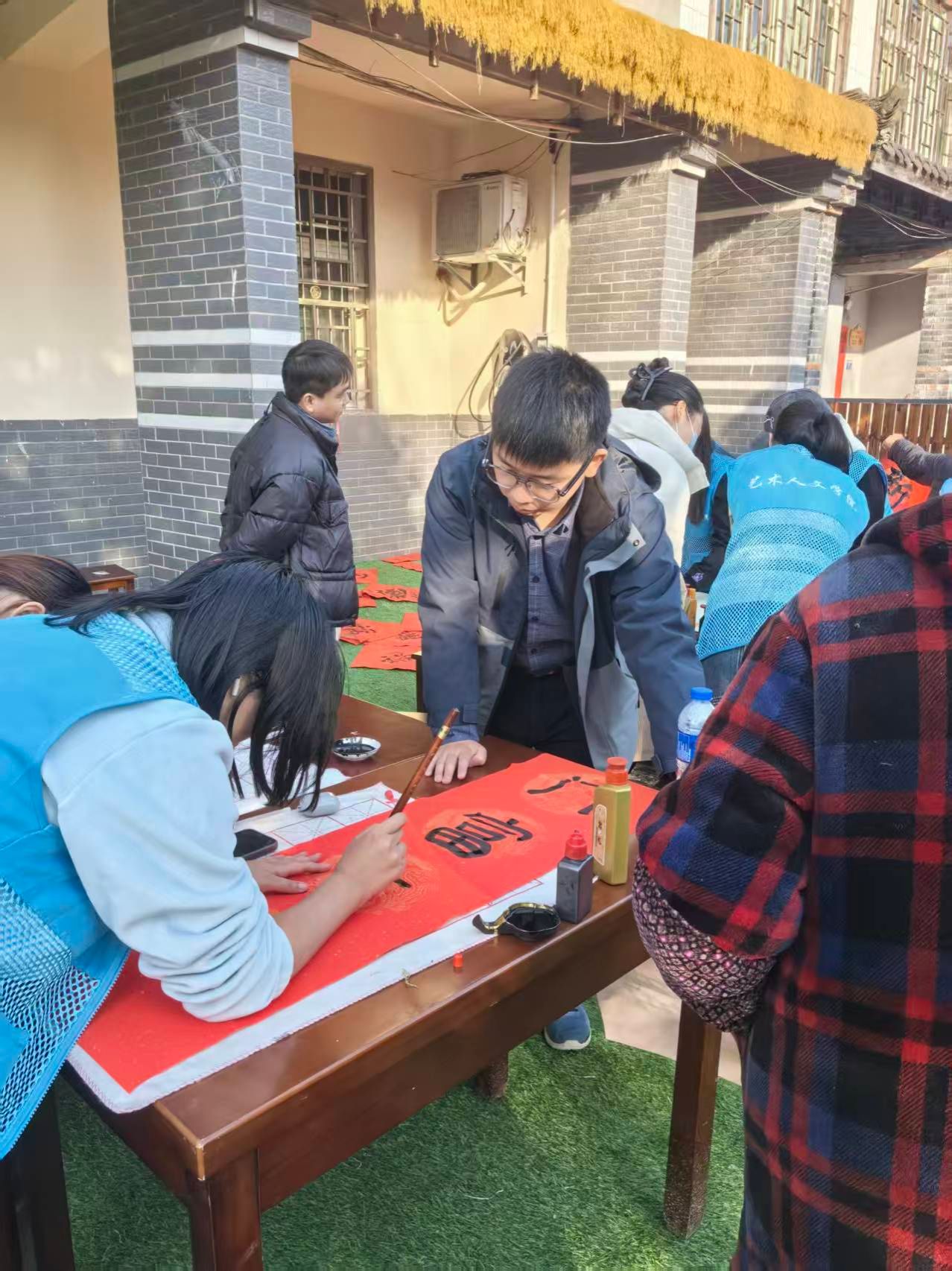 12月25日,艺术人文学院与江夏区五里界孙家店村合作共建的“艺文微光乡建工作室——老屋穆湾共享学堂”正式揭牌启用。学院党委书记高伟、副院长徐丹丹、办公室主任匡劼、辅导员尹洪鑫、李晴等带领艺术人文学院“兰亭书法协会”的同学们成功举办了“笔墨传情·新春送福”主题文化活动,通过现场书写春联、赠送祝福的形式,为乡村增添文化气息,传递新春温暖,受到村民热烈欢迎。