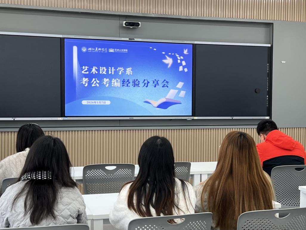 为厚植优良学风沃土,持续完善学生学业规划与发展指导体系,切实服务学生多元化成长成才需求,艺术人文学院艺术设计学系于2026年1月7日下午在A11-208教室举办“艺术设计学系考公考编经验分享会”。本次活动充分发挥优秀学生的示范引领和朋辈互助作用,聚焦学生职业发展关键需求,面向有志于考公考编的同学精准传递备考信息、系统解读政策形势、集中回应现实关切。活动由艺术设计学系主任张娜副教授与彭叶怡老师共同主持,特邀2024届研究生校友杨莹肖(美术史论研究方向)和2025届本科生校友李瑶(艺术设计学专业)以线上视频形式作专题分享。