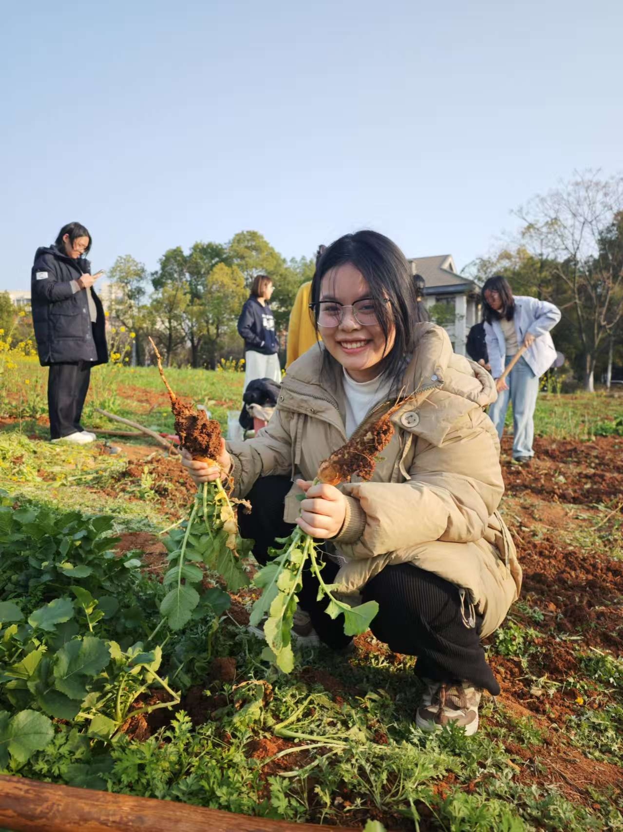 农耕实践活动的过程中,同学们真切体会到了农事劳作的细致与严谨。耕地翻土作为种植的第一环节,直接影响着作物的生长状况:翻土充分、土壤疏松,萝卜便能茁壮成长;翻土不到位,萝卜的长势便会受到影响。从萝卜的生长差异,让大家在实践中悟到了“一分耕耘,一分收获”的朴素道理。
